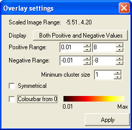 for this value. Set the negative range the same way. Minimum cluster size should be left at 1. Then click Apply.