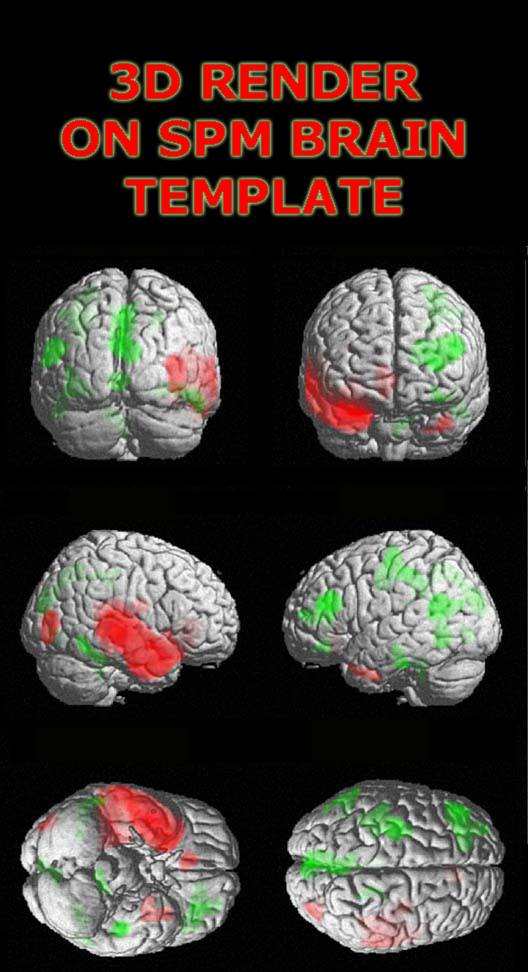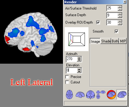 Another method is to use MRIcro to create a 3D rending of your results. The advantages of using MRIcro are there are no R/L orientation hassles. The disadvantages are that overlayed contrasts are not as detailed as the SPM2 results. For detailed instructions see Volume Rendering the Cortex.